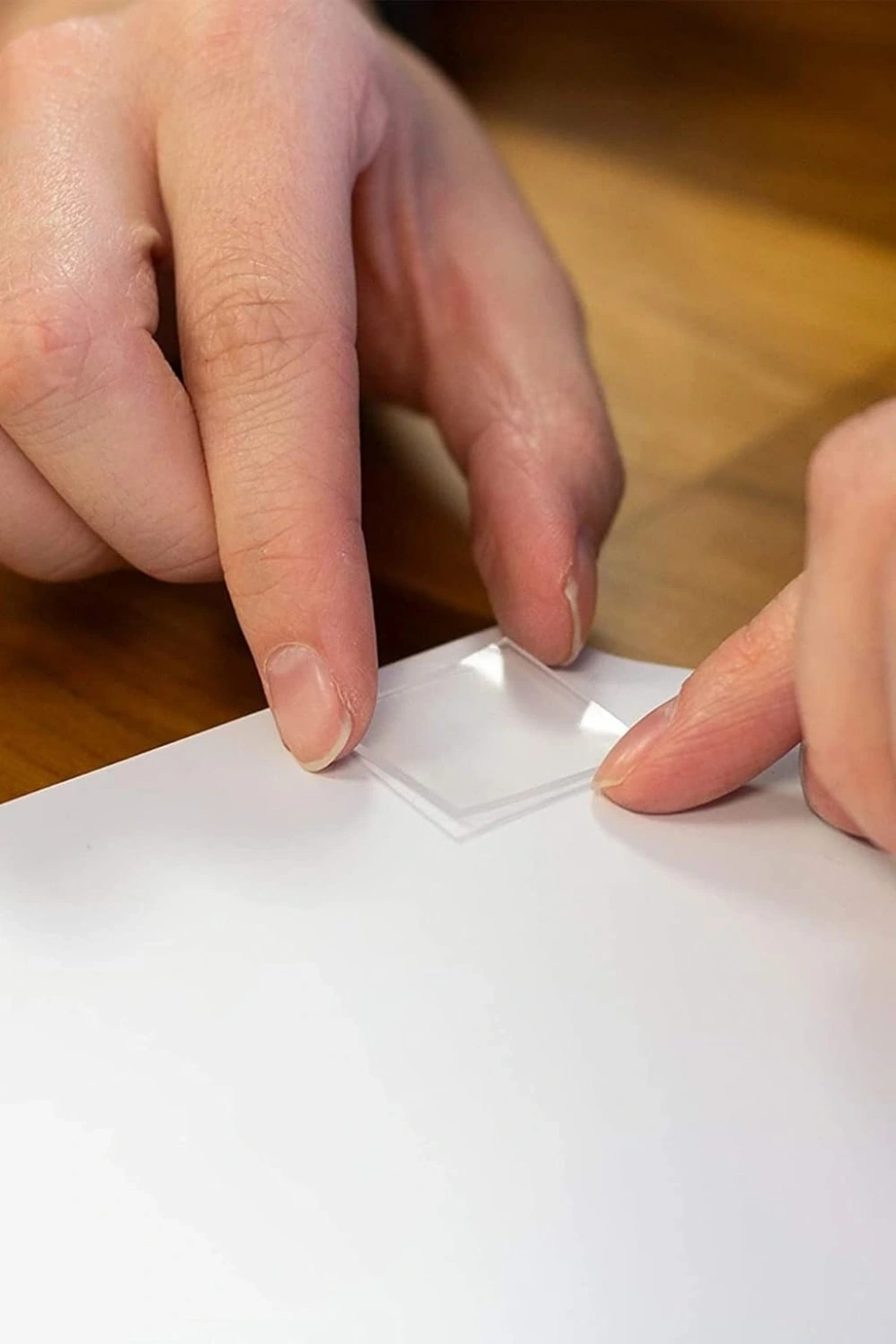 Koruyucu kağıdı kaldırın ve yapıştırılacak olan objeyi bandın üstüne bastırın