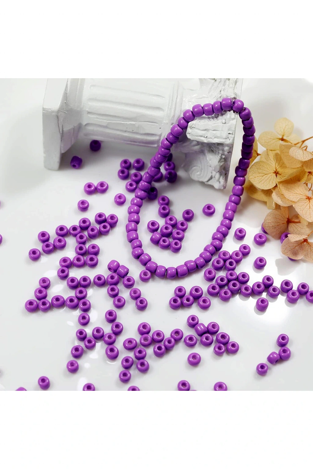 Mor Renk 4 mm Yaklaşık 660 adet / 60 gram Cam Boncuk Oya Yazma Bileklik ve Kolye
