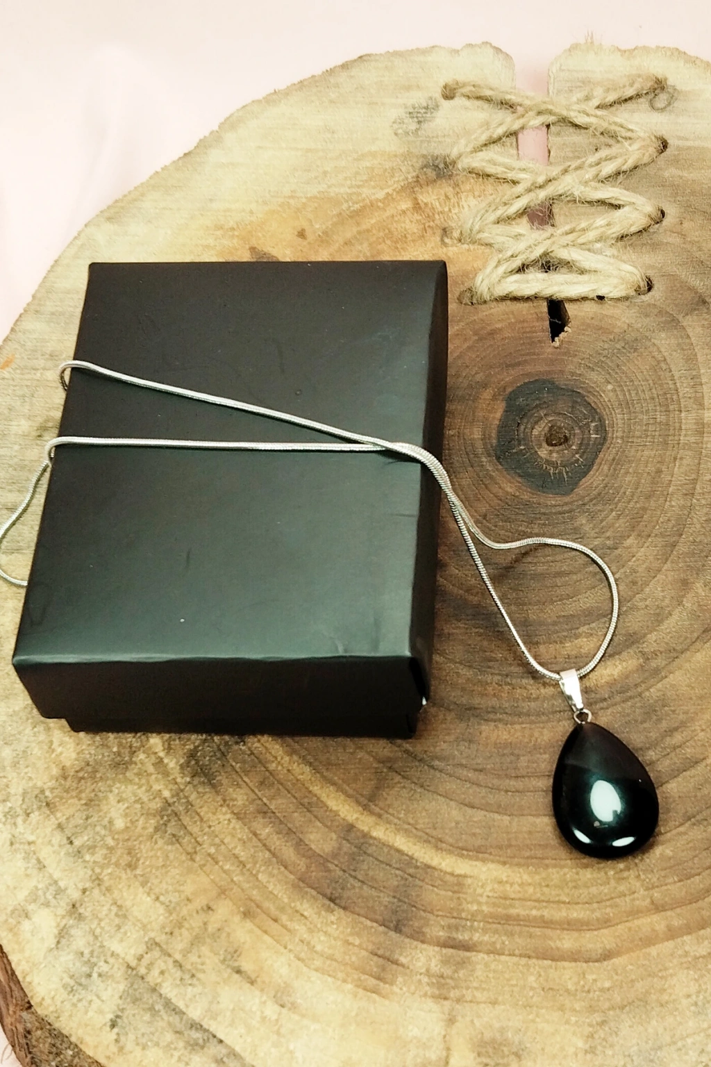 | Onix Kuvars Doğal Taşı Zincirli El Yapımı Kolye Uç: 2 cm Zincir: 20 cm Kutulu |
