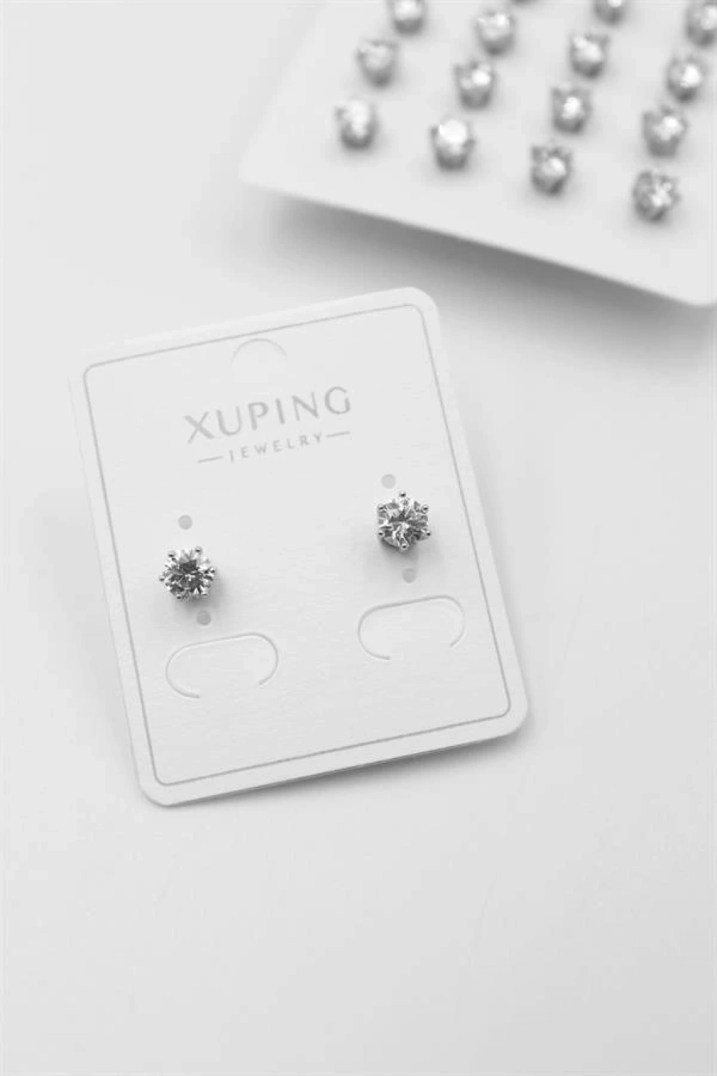 Orta Boy Zirkon Taşlı Tektaş Küpe - Gümüş