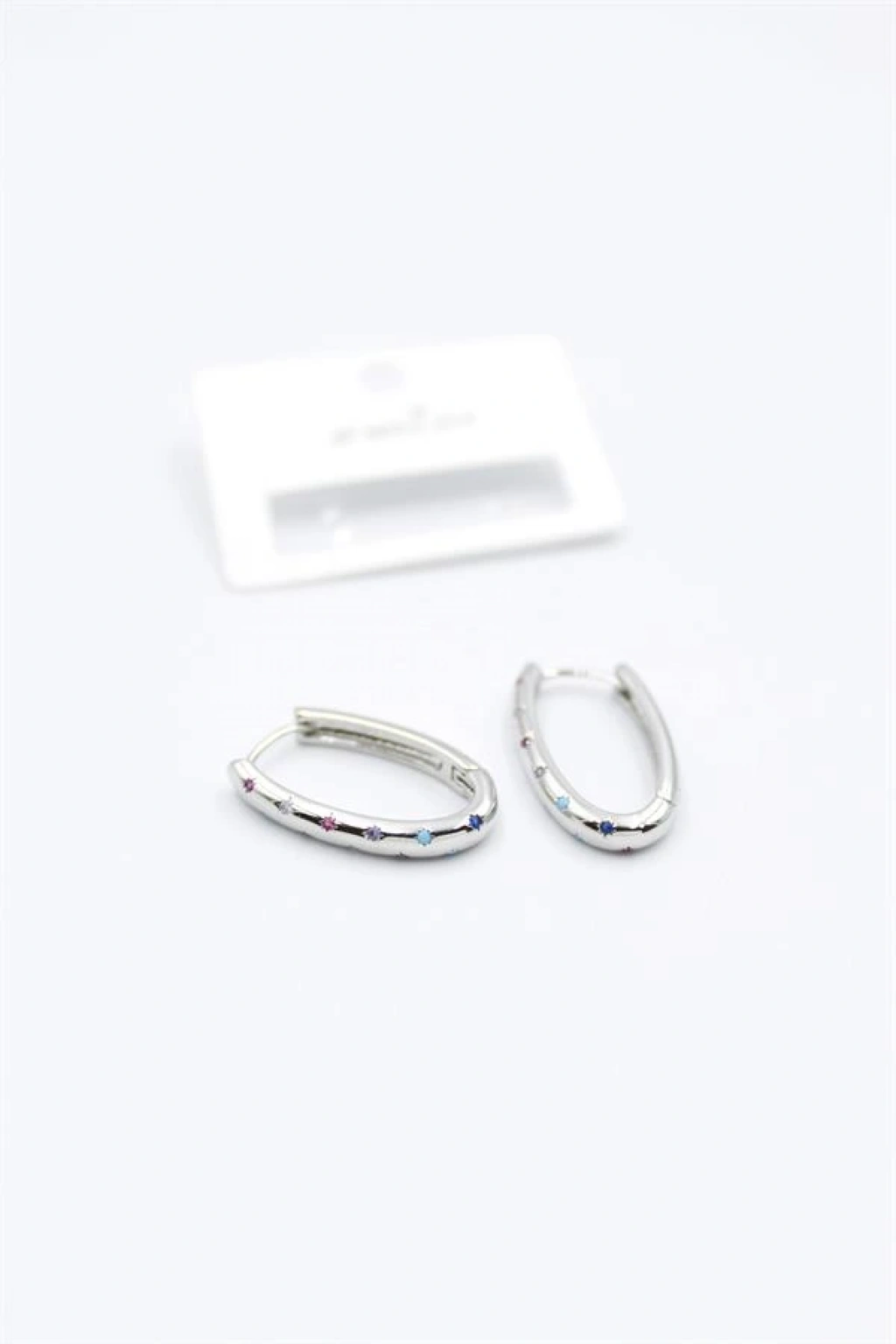 Oval Taşlı Küpe - Gümüş
