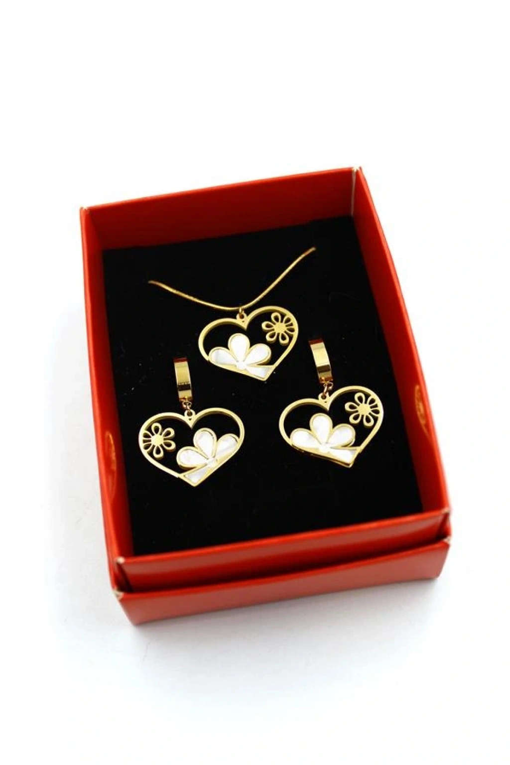 Papatya Kalp Set Kolye - Altın
