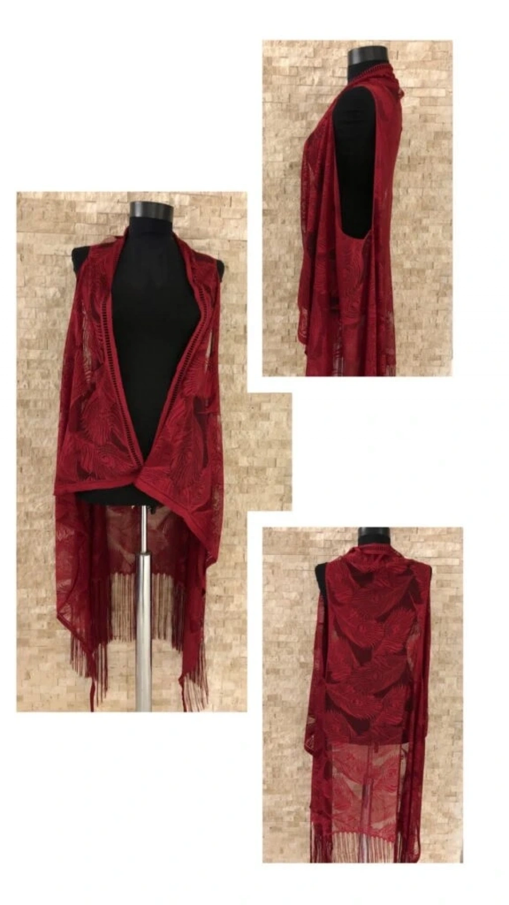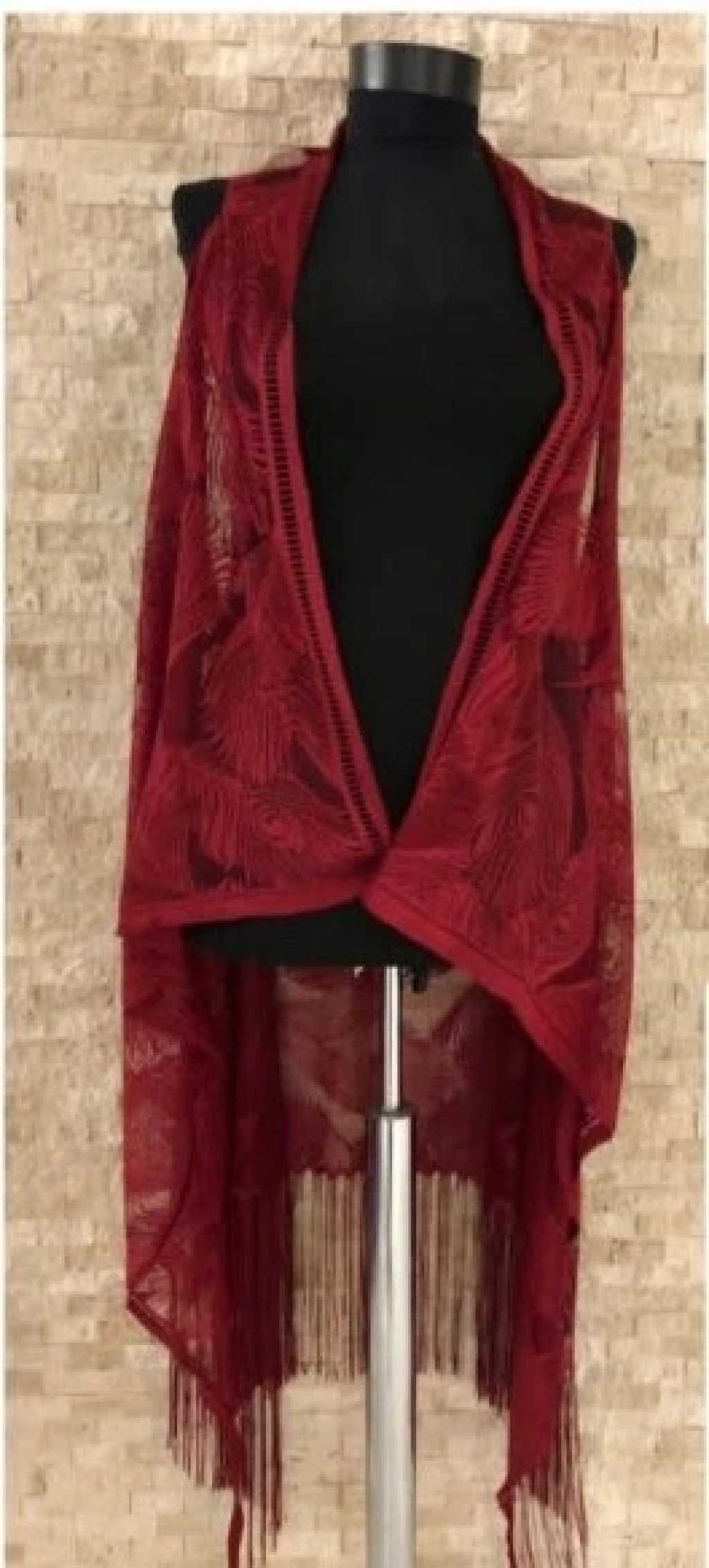 Şıklığı ve zarafeti bir araya getiren "Pareo Dantel Yelek Mayo Bikini Üzeri Yaprak Desenli Püsküllü Plaj Elbisesi", plaj stilinizi tamamlayacak mükemmel bir seçenektir. Bu özel tasarım, sizi plajda veya havuz kenarında dikkat çekici kılacak