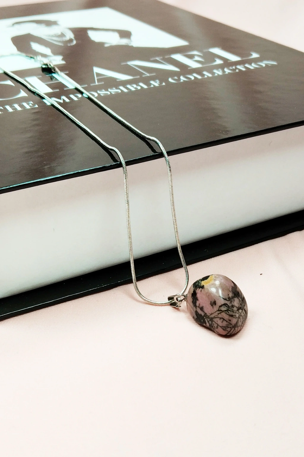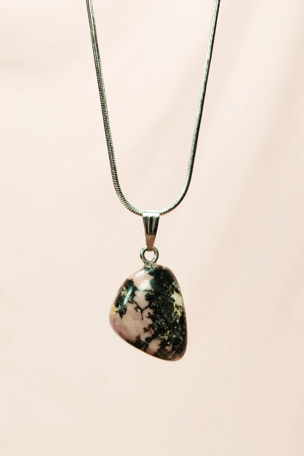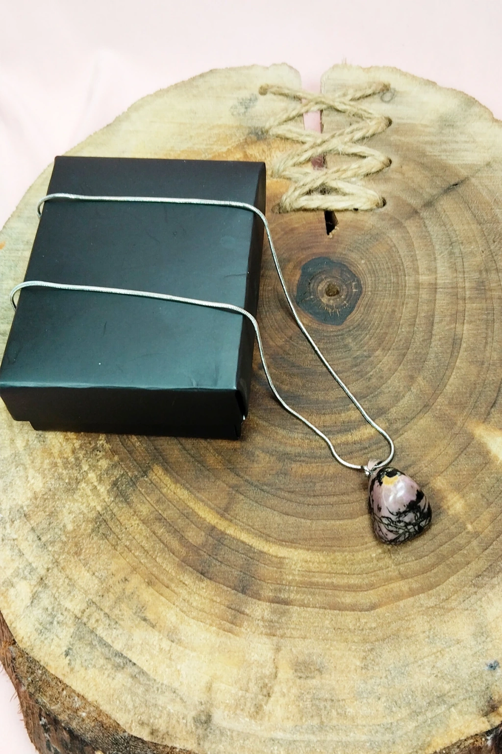 | Rodonit Doğal Taşı Zincirli El Yapımı Kolye Uç: 2 cm Zincir: 20 cm Kutulu |