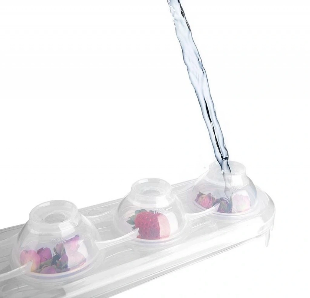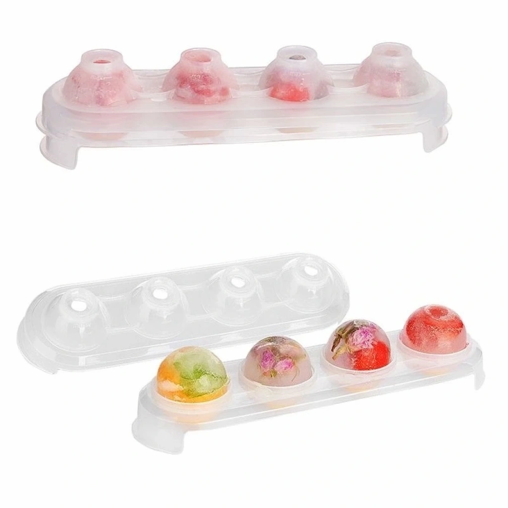 Silikon Tabanlı 4 Bölmeli Şeffaf Buz Kalıbı Yuvarlak Buzluk