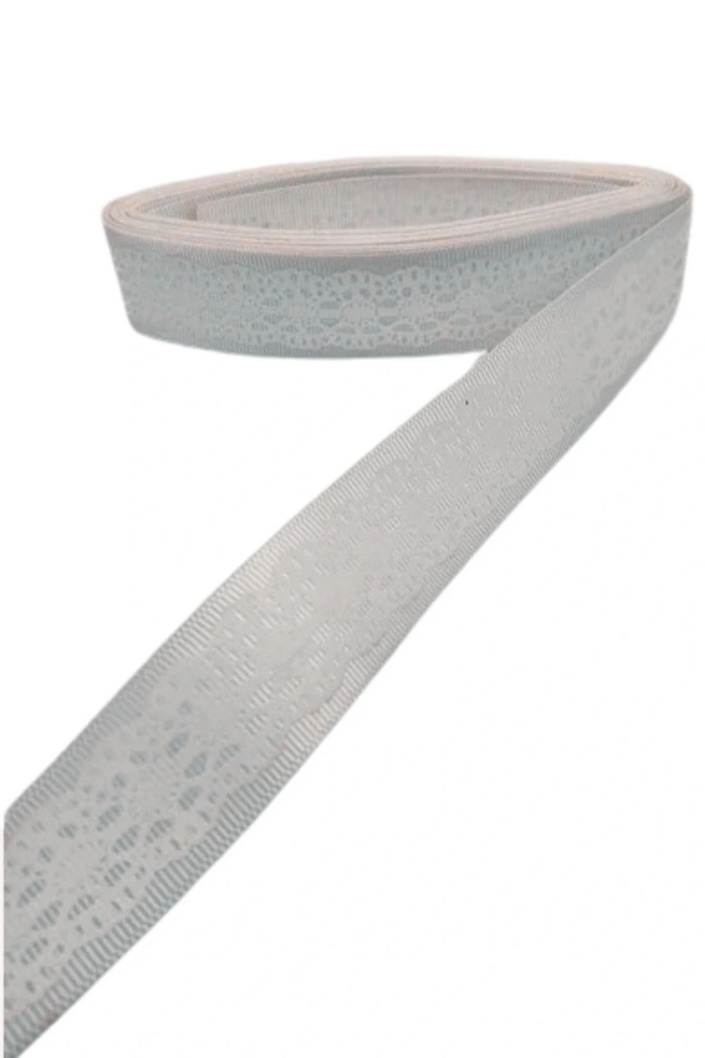 Tafta Dantel Görünümlü Kurdele Gri 25 mm 2 Metre