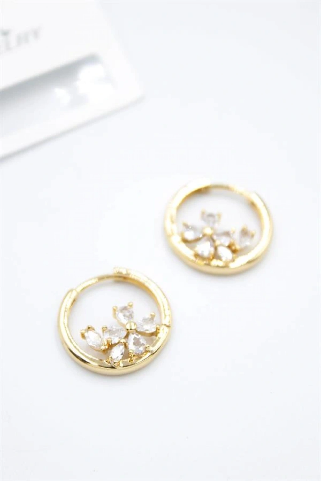 Taşlı Çiçek Küpe - Altın