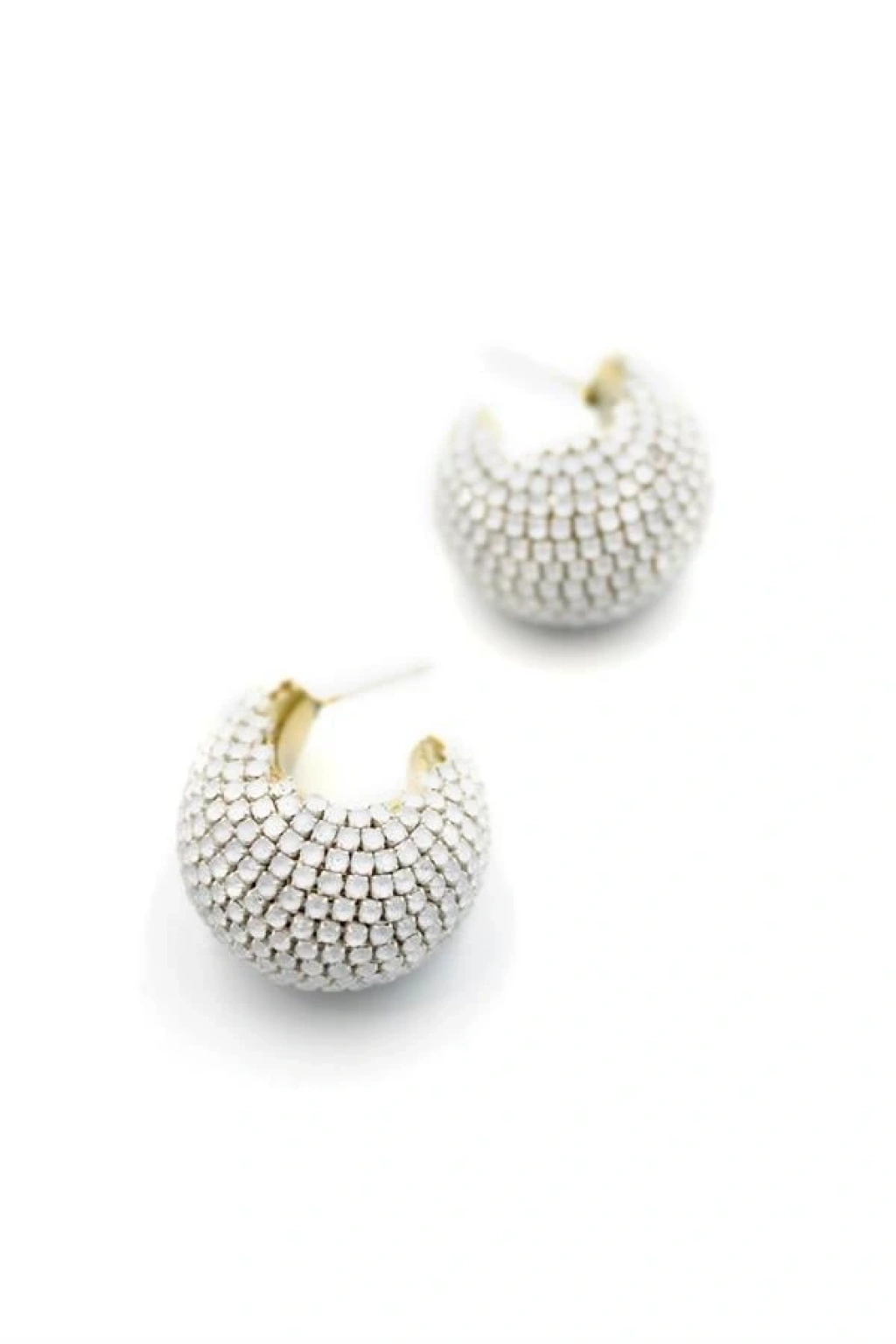 Taşlı Halka Küpe - Beyaz