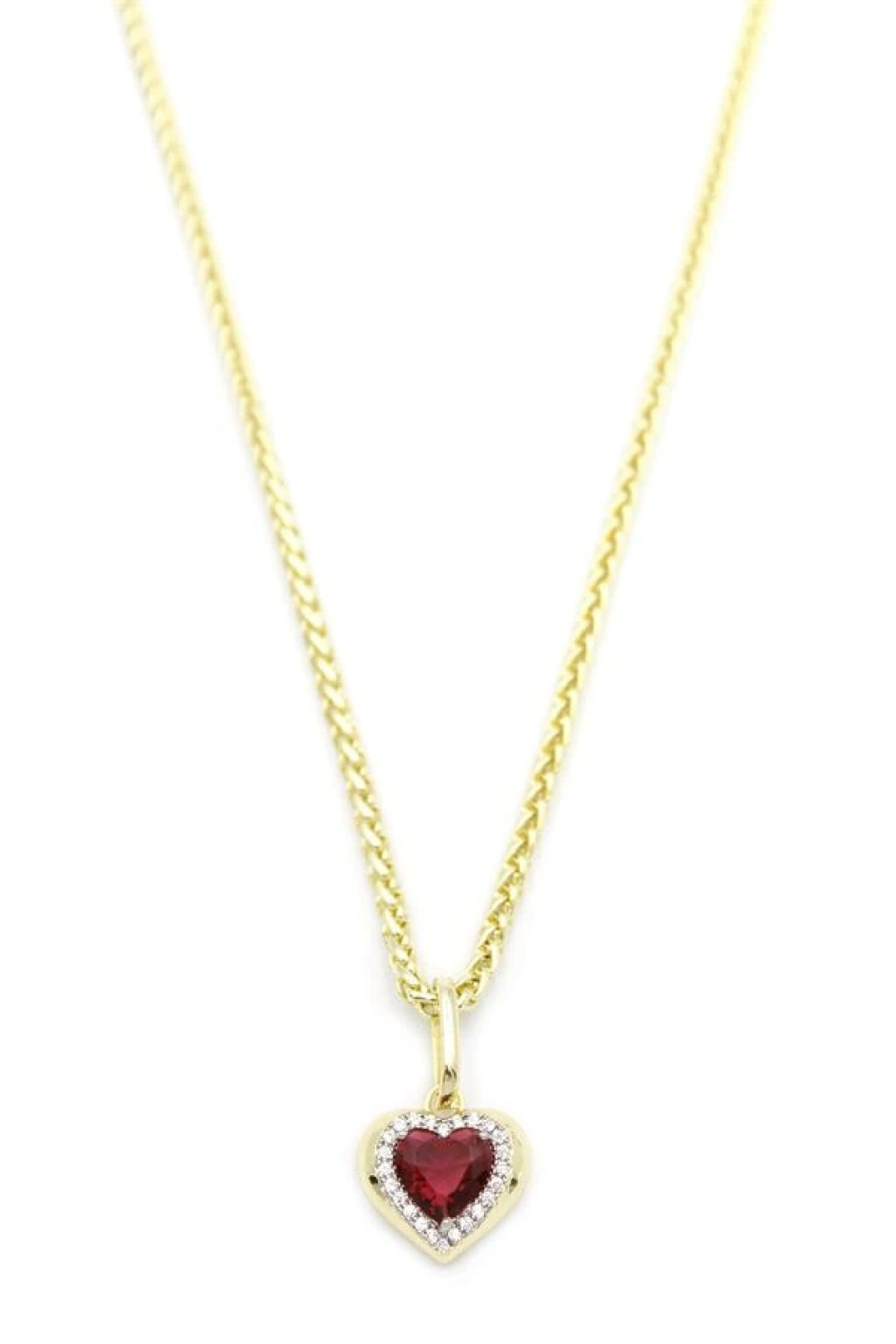 Taşlı Kalp Kolye - Kırmızı