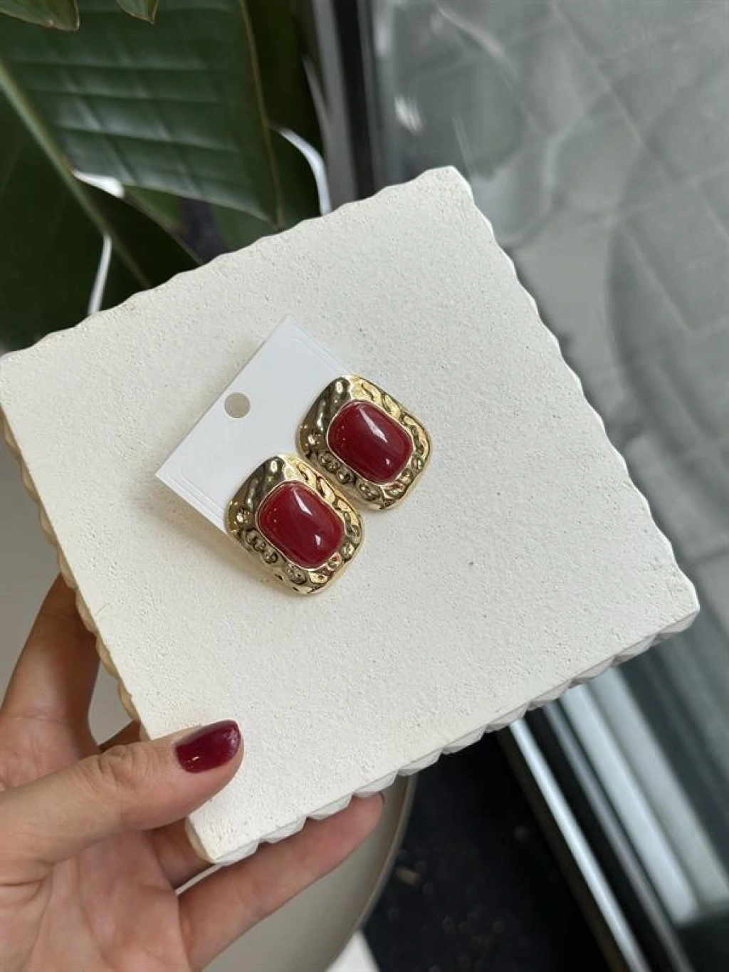 Taşlı Küpe - Bordo