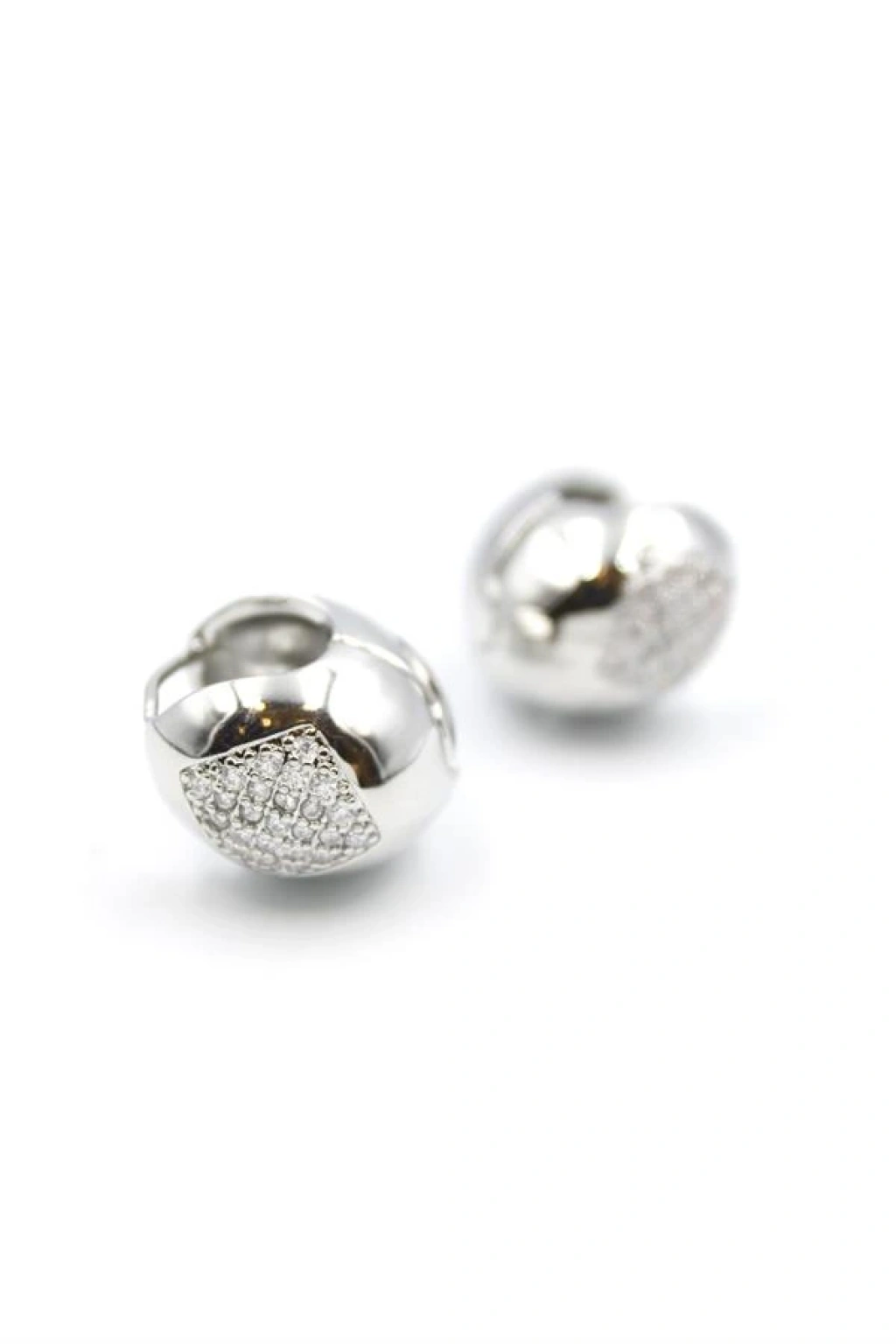 Taşlı Top Küpe - Gümüş