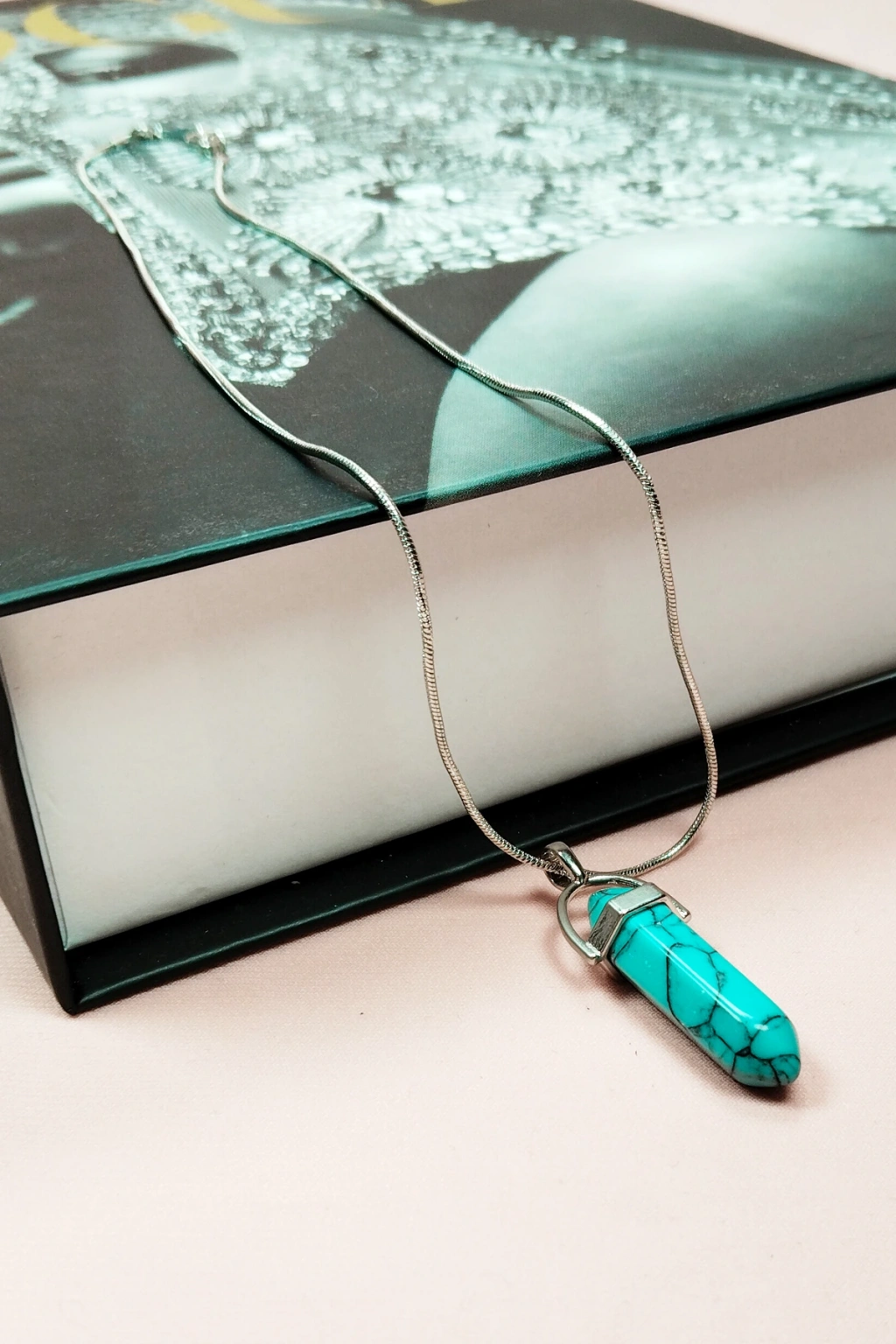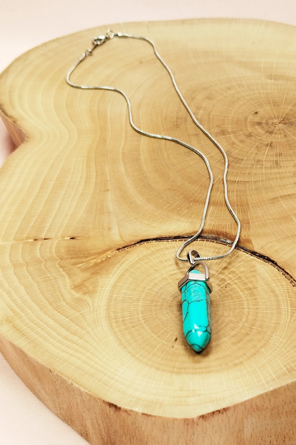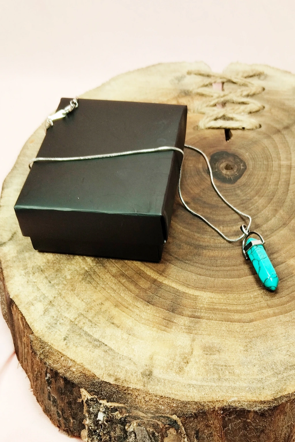 | Turkuaz Doğal Taşı Zincirli El Yapımı Kolye Uç: 3 cm Zincir: 20 cm Kutulu |