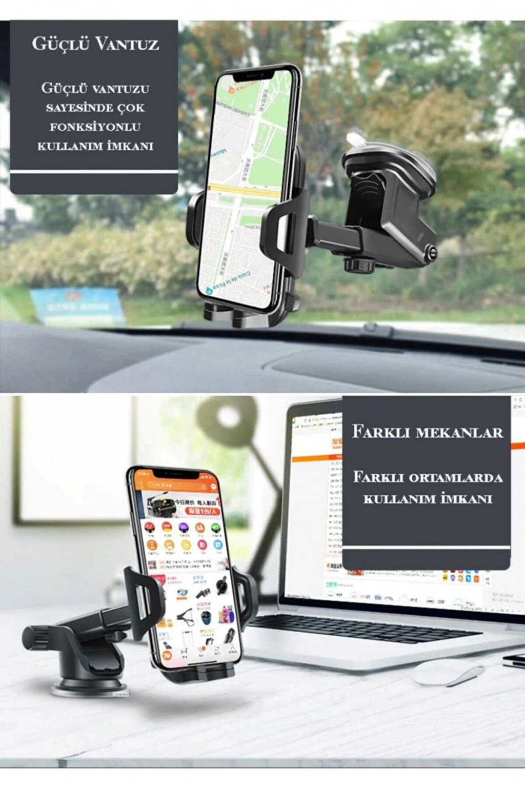Güçlü vantuzu sayesinde araç içi titreşim ve sarsıntılara dayanıklıdır.