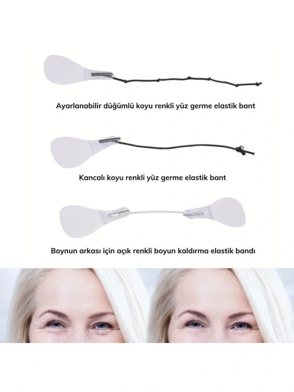 10 adet Yüz Germe Bandı ve Kademeli Uygulama Lastikleri