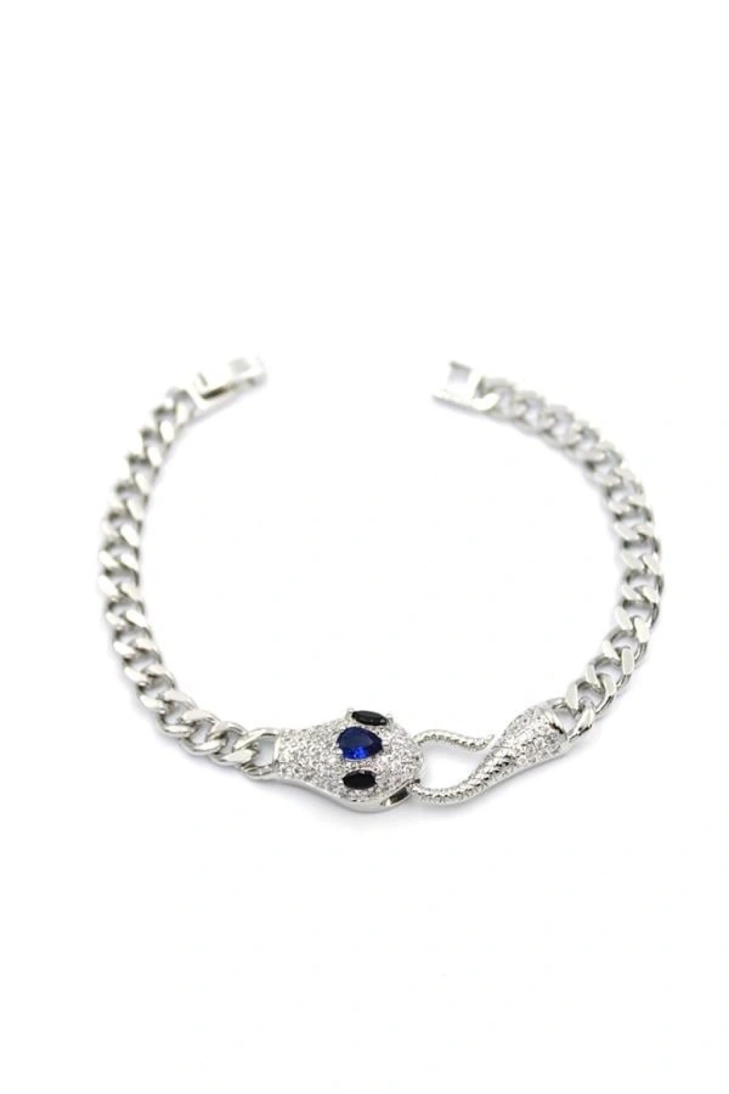 Zirkon Taşlı Yılan Bileklik - Gümüş
