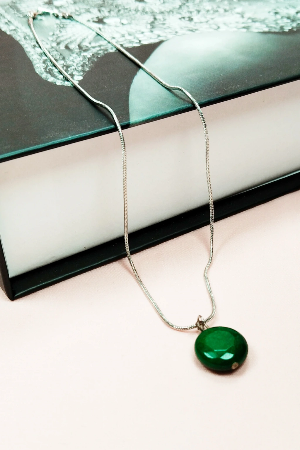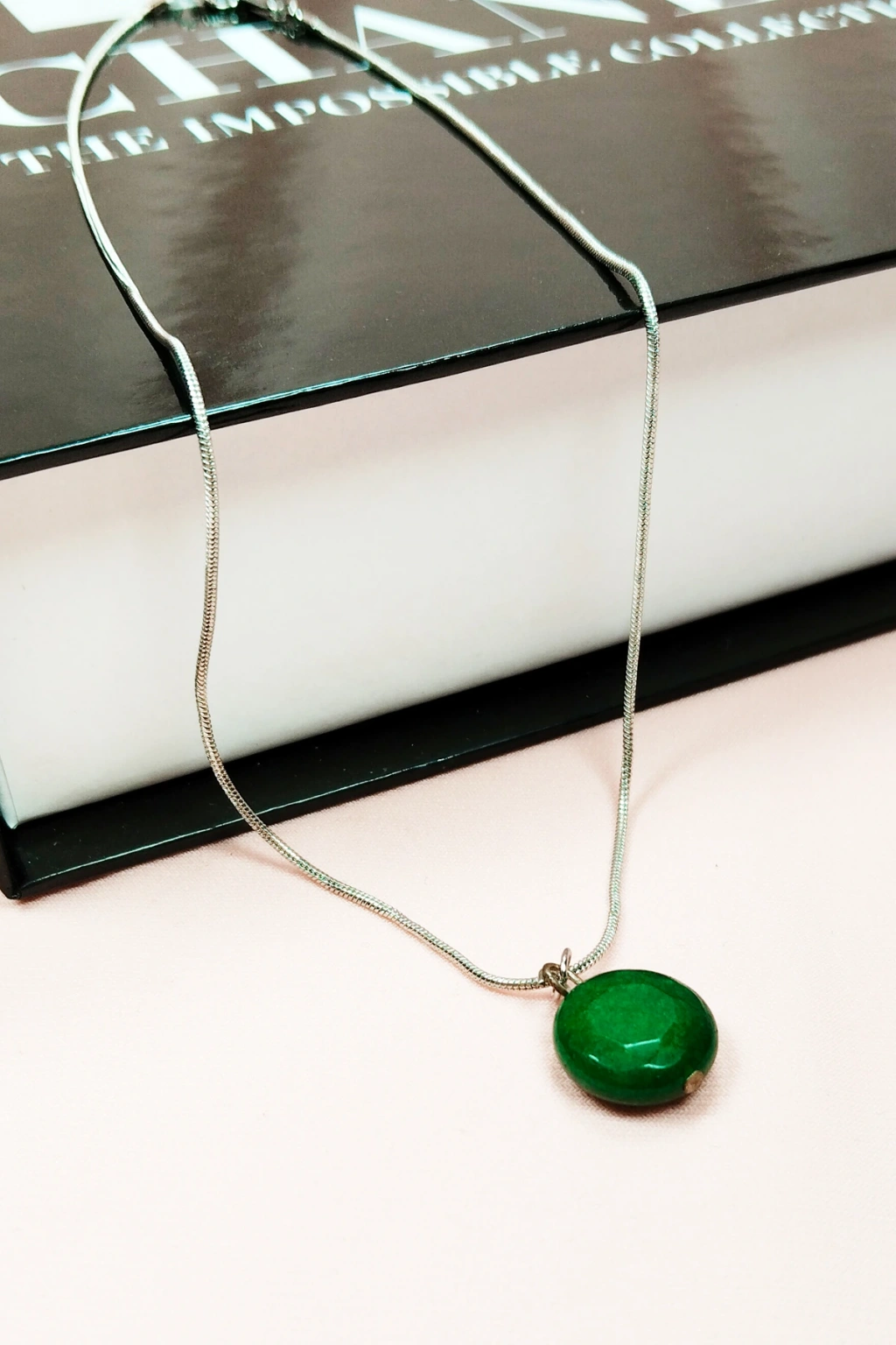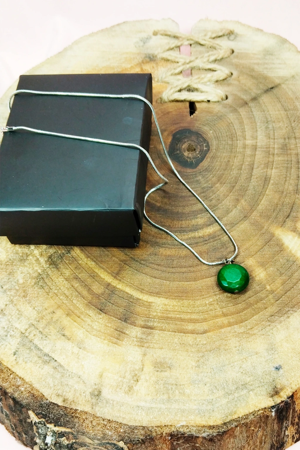 | Zümrüt Doğal Taşı Zincirli El Yapımı Kolye Uç: 1,5 cm Zincir: 20 cm Kutulu |