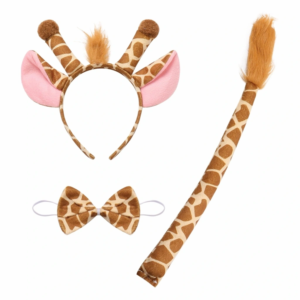 Zürafa Kostüm Seti 3 Parça, çocukların okul gösterilerinde, sahne performanslarında ve özel etkinliklerde rahatlıkla kullanabileceği sevimli ve hafif bir kostüm setidir.